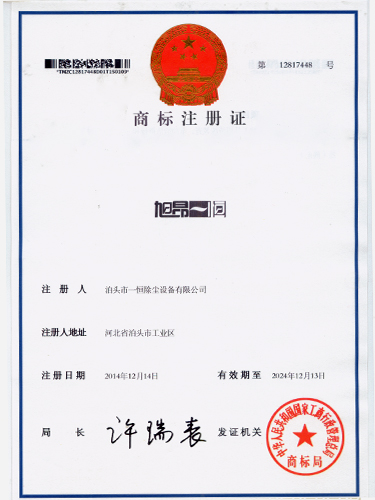 一恒商標注冊證-一恒商標注冊證-泊頭市一恒除塵設備有限公司