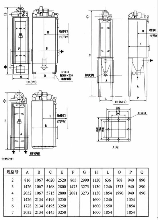 UF(STD、FM、FB)型單機(jī)振打袋式除塵器/單機(jī)除塵器技術(shù)性能: